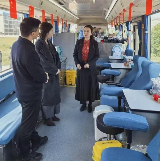 在献血车内,领导们看望了正在献血的同学们,对他们积极参与无偿献血、传递爱心的行为给予了高度肯定。潘勇华副院长与同学们亲切交谈,询问他们的献血感受,并对大家展现出的勇敢和担当表示赞赏。他叮嘱同学们献血后要注意休息,合理饮食,保持良好的生活习惯。